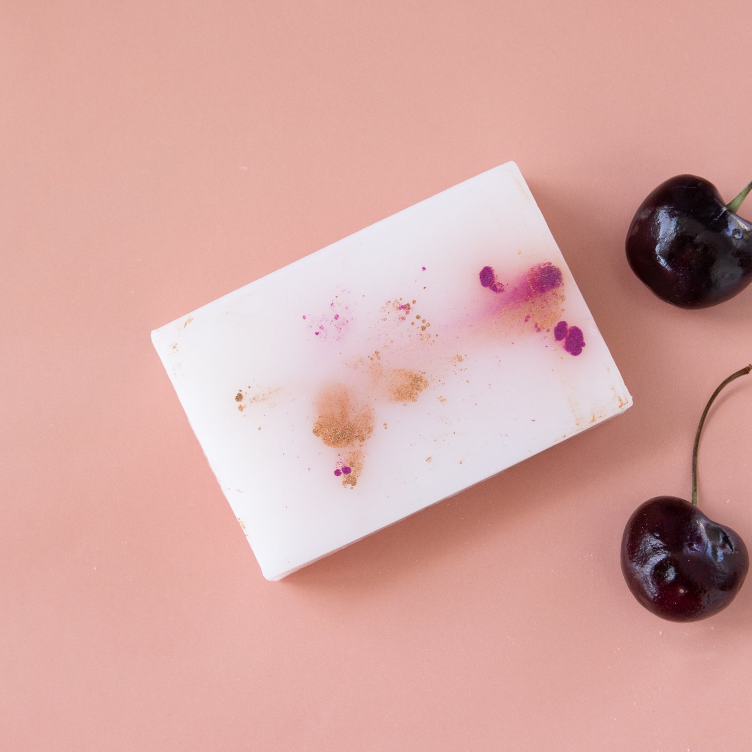 You had me at Aloha.... A creamy white glycerin soap bar with swirls of pink and gold mica with a tropical fruits and flowers fragrance.