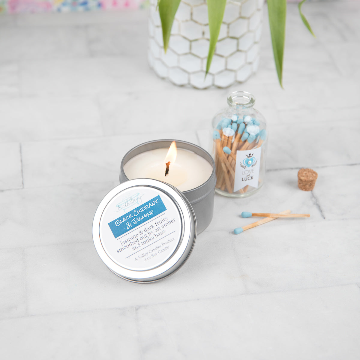 Hand crafted, in small batches with 100% American made soy wax, essential oils, fragrance oils with no harmful chemicals, and cotton wicks.  Made by Valley Candles in the twist tins just for Bath Bevy!