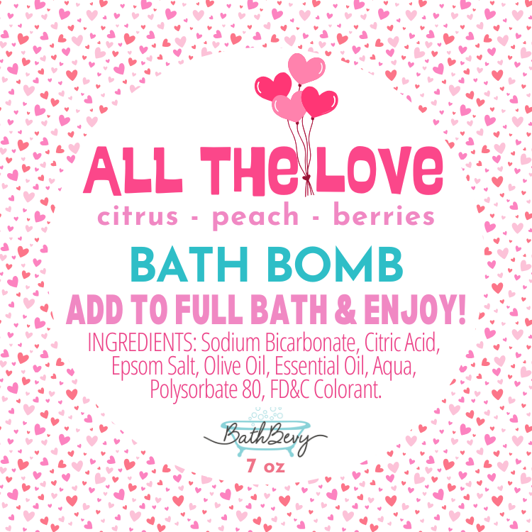 Sweet, citrusy and loaded with pink and red hearts, this bath bomb has nothing but love to give! Scented in mandarin orange, bergamot, and tangerine, and enhanced by hints of fresh peaches, strawberries, and raspberries - all on an undertone of romantic white musk.