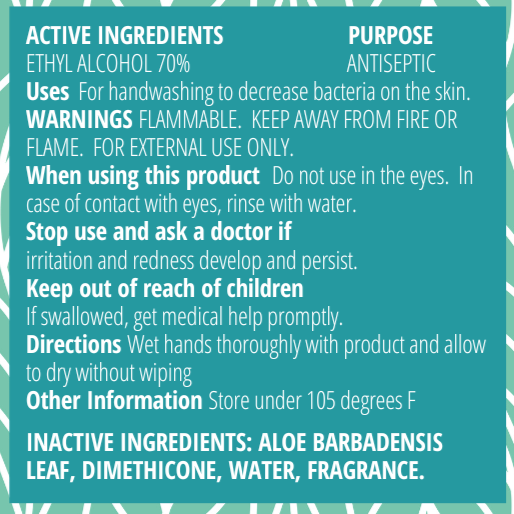 Our sanitizer contains 70% Ethyl Alcohol which is over the CDC’s guidance of 60% or more with added aloe vera to care for your skin!