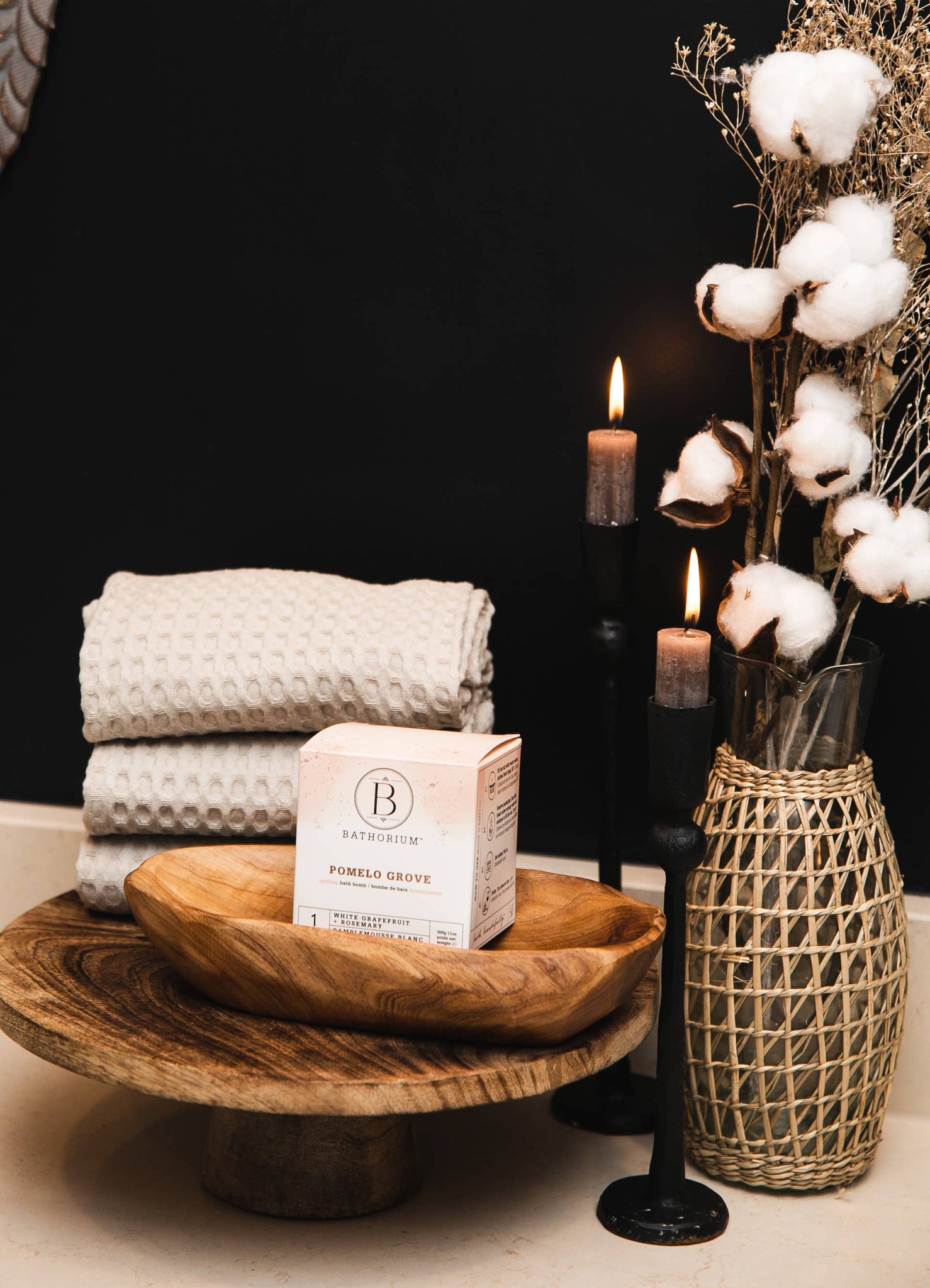 Uplifting Italian citrus oils cascade through the tub while fresh mango butter and Vitamin C brighten and hydrate lack lustered skin. Hot summer days with sunburnt skin are no match for Pomelo Grove! 300g (1 bath).