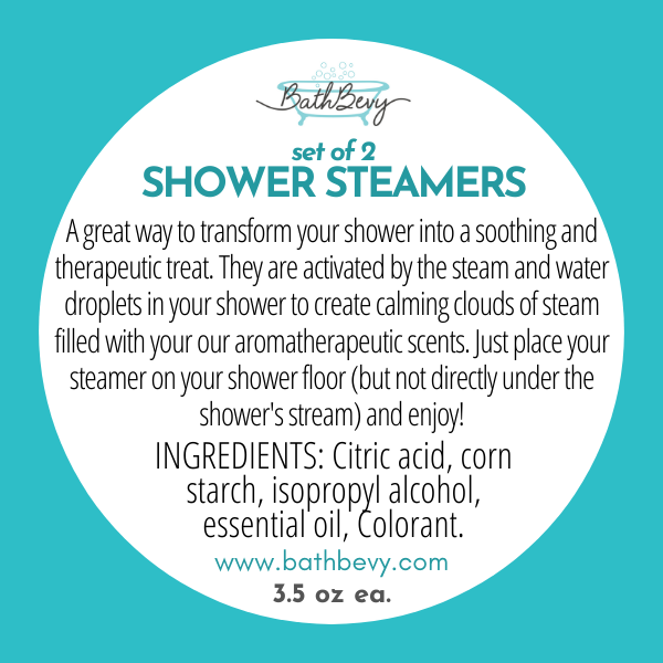 A great way to transform your shower into a soothing and therapeutic treat. They are activated by the steam and water droplets in your shower to create calming clouds of steam filled with your our aromatherapeutic scents. Just place your steamer on your shower floor (but not directly under the shower's stream) and enjoy!