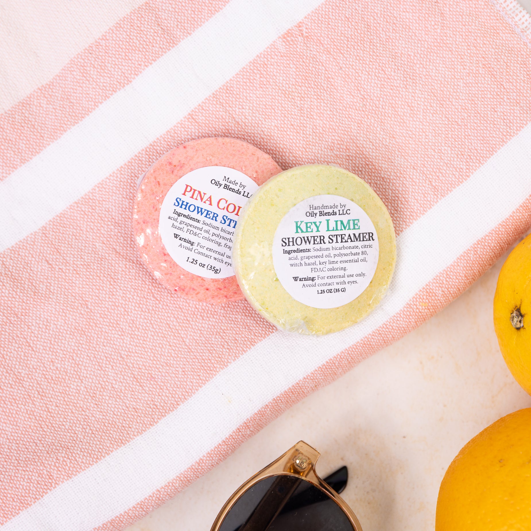 SHOWER STEAMERS by Oily Blends Place the steamer in the back of the shower, not directly under the shower spray, but where it will still get splashed by the hot water. Shower as long as desired. Scents this month include: KEY LIME and PIÑA COLADA