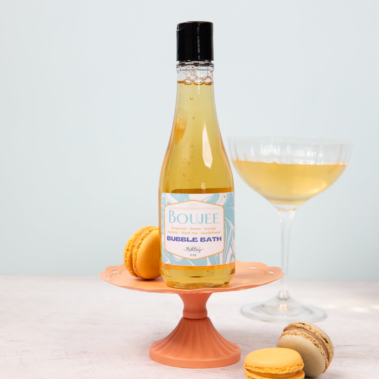 The Boujee Bubble Bath is scented in a luxurious blend of bright bergamot, lemon, and orange with earthy matcha, black tea, and sandalwood. A little truly goes a long way! Add 1-2 oz as your tub fills for tons of fluffy bubbles.