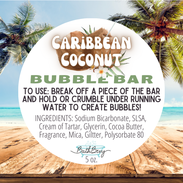 Dream of a Caribbean getaway with our Caribbean Coconut Bubble Bar! Our creamy coconut milk scent will whisk you off to sandy beaches, where sunny days are more than just a daydream. So grab your sunnies and let your worries melt away with our luxurious bubbles!