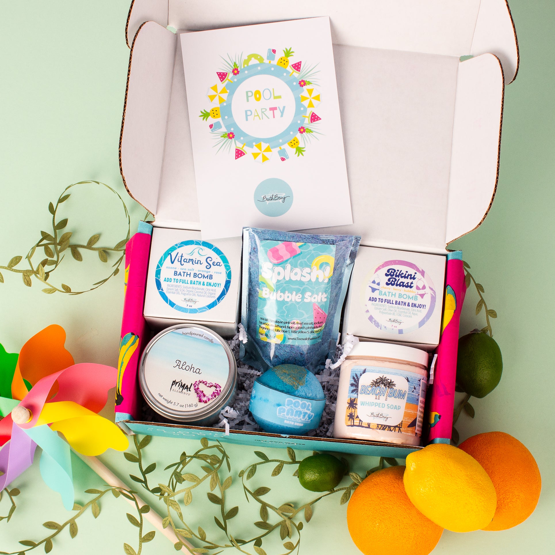 POOL PARTY BATH BOMB by The Bath Lab Scented in a lovely combination of lemon, lime and coconut. Add to your full bath and enjoy!